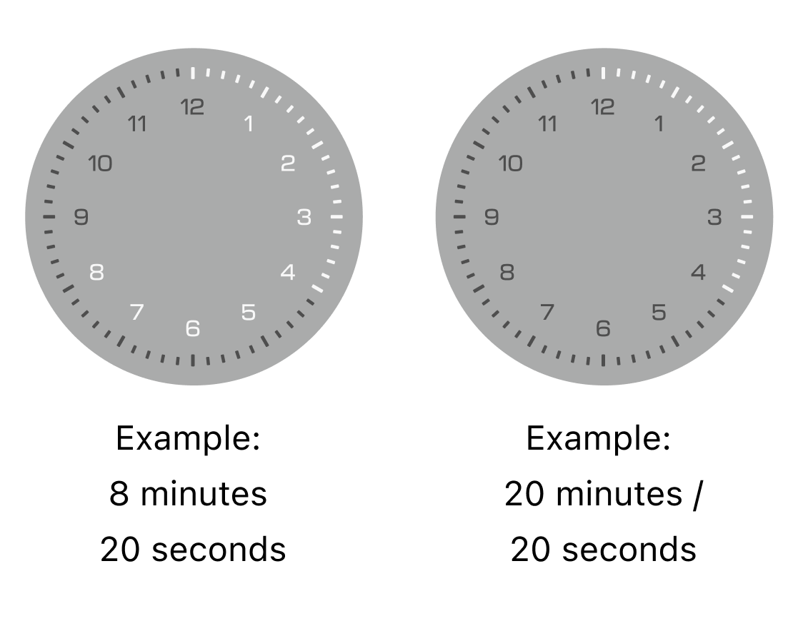 Turn the crown to select “seconds” and press the crown to start the timer with a sound. Seconds increase or decrease in 5-second increments and can cross minute boundaries.