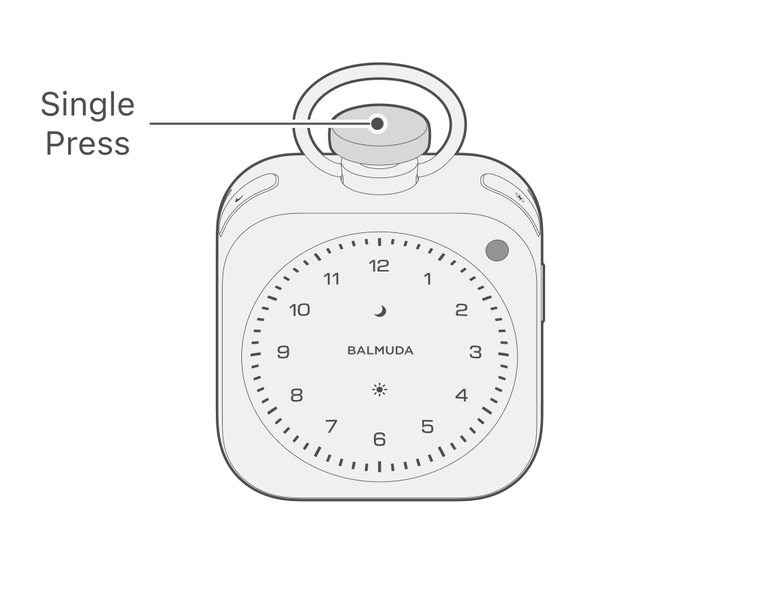 When The Clock is linked with BALMUDA Connect, it regularly obtains the correct time (UTC time) from the internet. The time adjusted on the device operates as an offset from UTC time. For example, if the UTC time is 0:20, Tokyo time is 9:20 (UTC+9 hours), and the device is set to 9:25, the device operates as “UTC+9 hours 5 minutes.”
