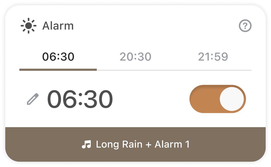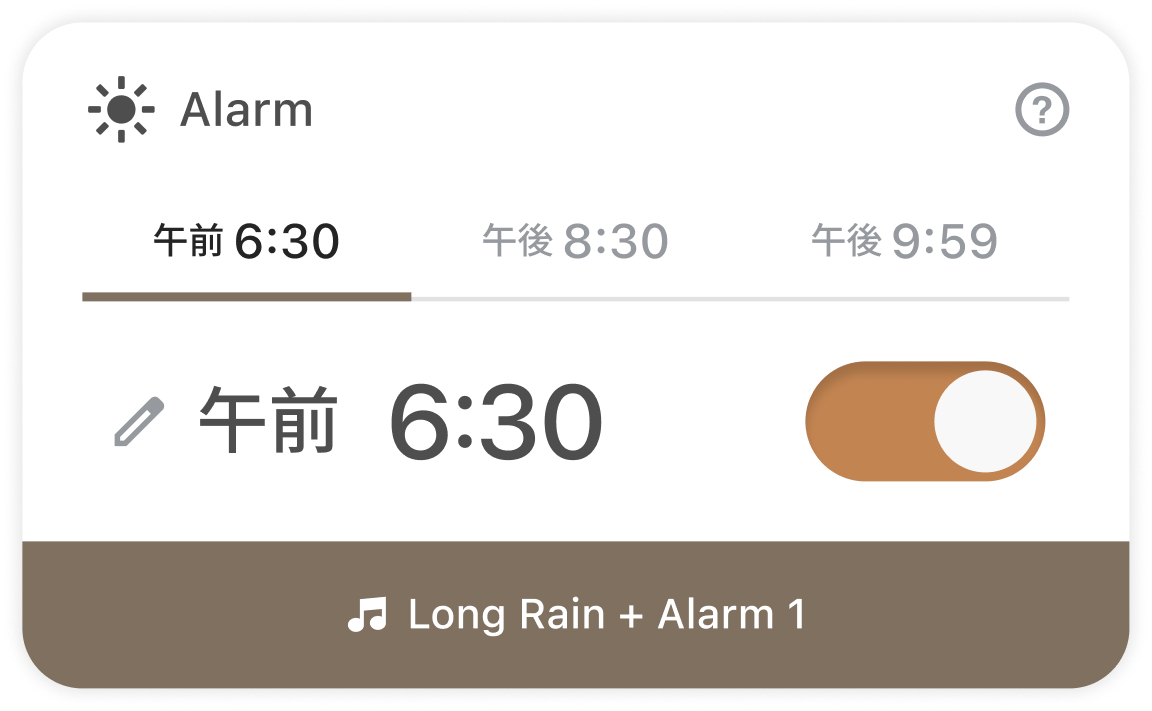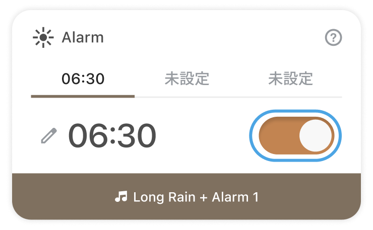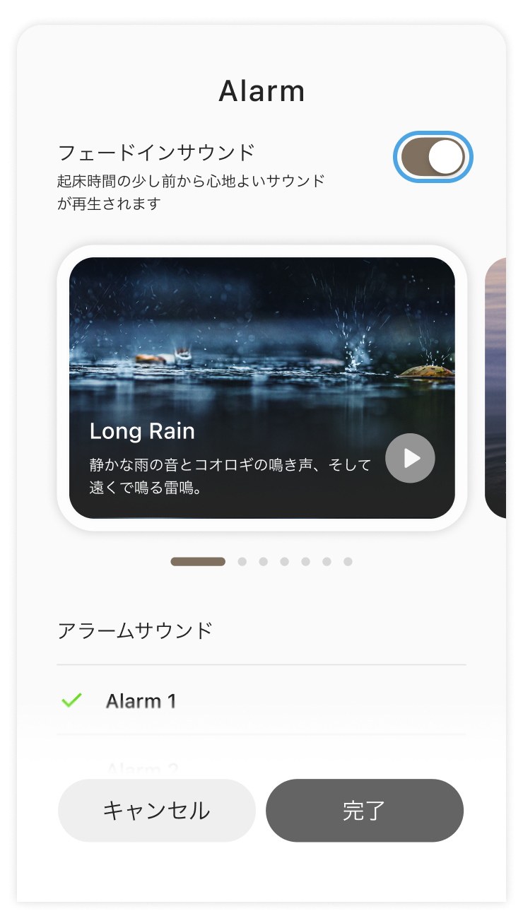 設定した起床時刻の3分前から、心地よいフェードインサウンドが再生されます。