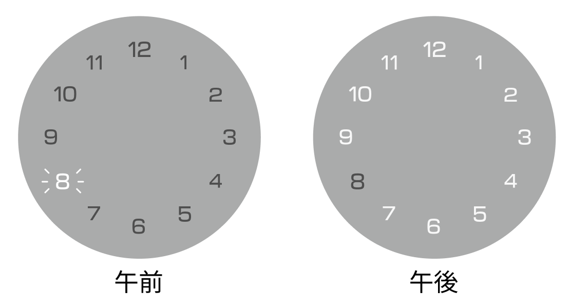 午前は選択されている数字だけが点滅し、それ以外の数字は消灯します。