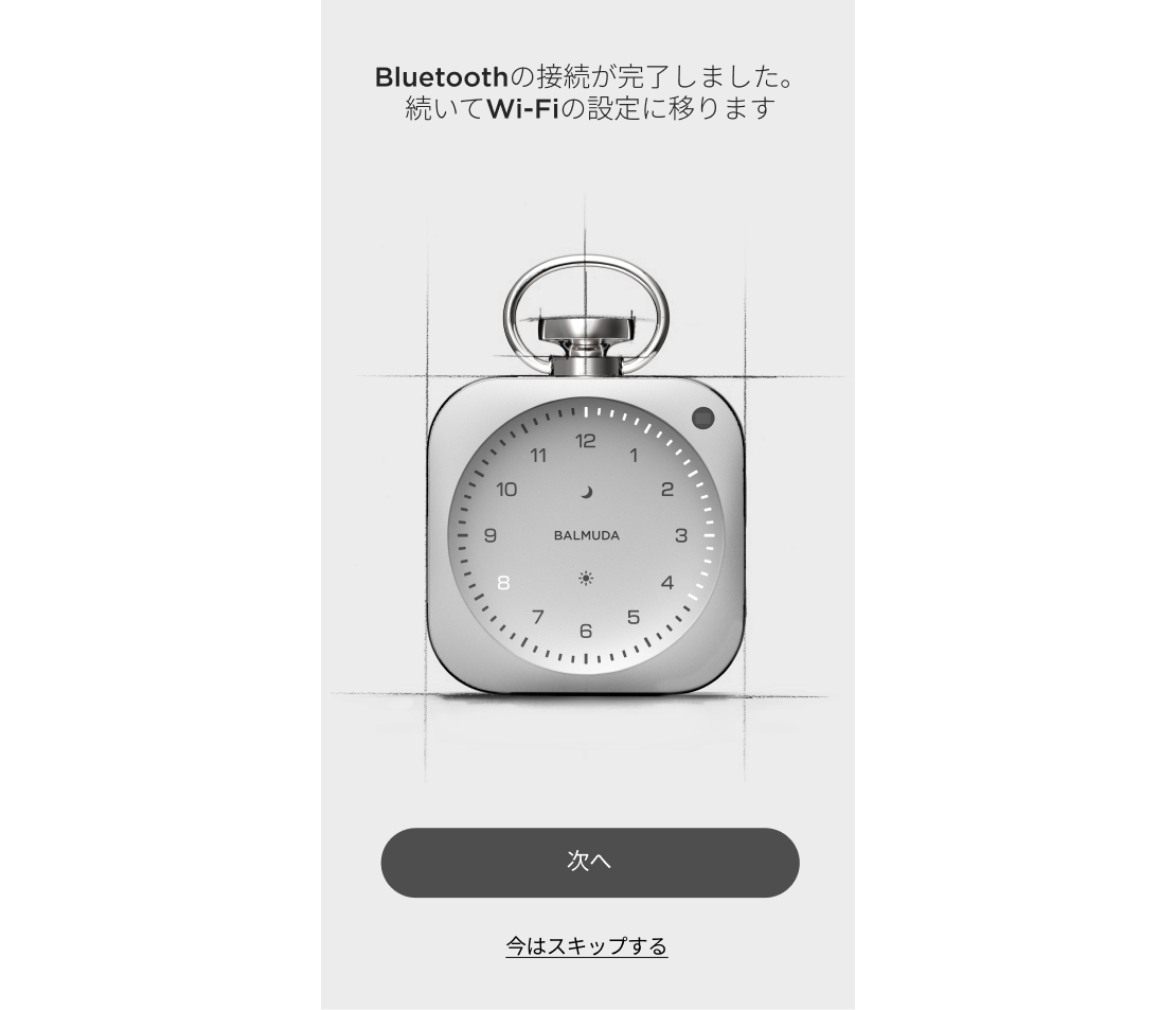 再度、The Clockとアプリの連携をおこない、Wi-Fi接続の設定に進みます。詳細は「アプリとの連携」をご覧ください。