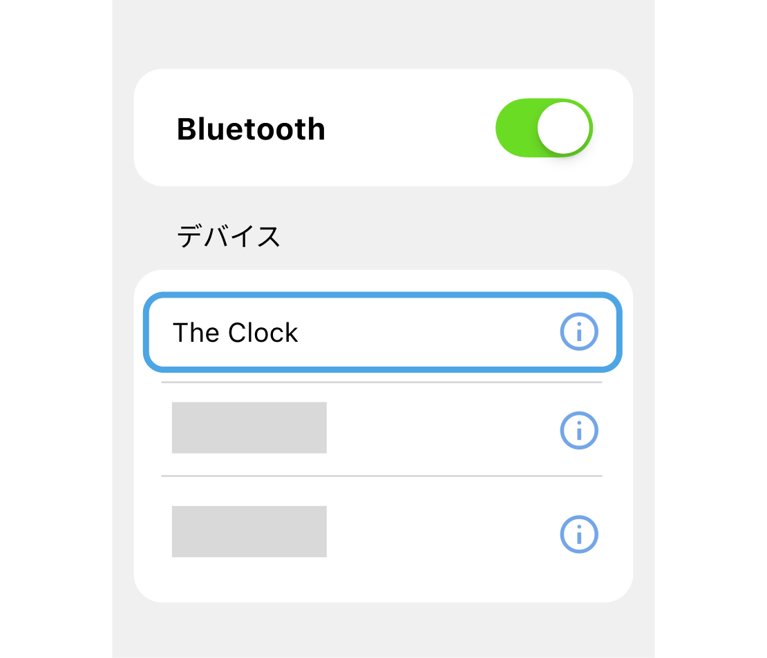 すでにThe Clockがペアリングされている場合は、The Clockとアプリの連携を解除する必要があります。解除方法は「アプリとの連携解除」をご覧ください。