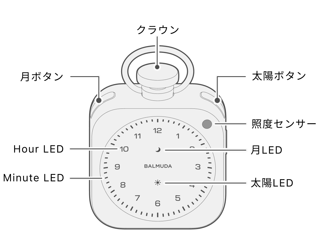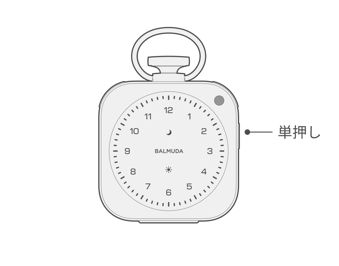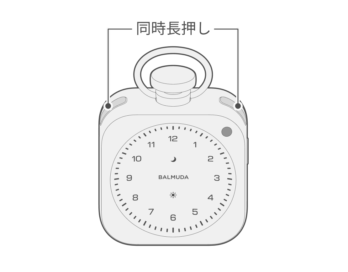 電源を切るには、電源が入った状態で月ボタンと太陽ボタンを同時に長押しします。