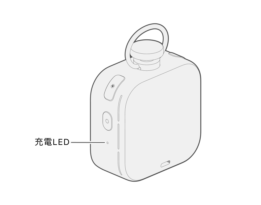電池残量が15%以下になると、バッテリー省電力モードに移行します。充電LEDが明滅し、月LEDと太陽LEDが交互に点滅します。また、明るさ、音量の最大値が制限され、時計表示はSimple(秒針無し)になります。Relax Time・タイマー・時刻スタイル変更が行えなくなります。