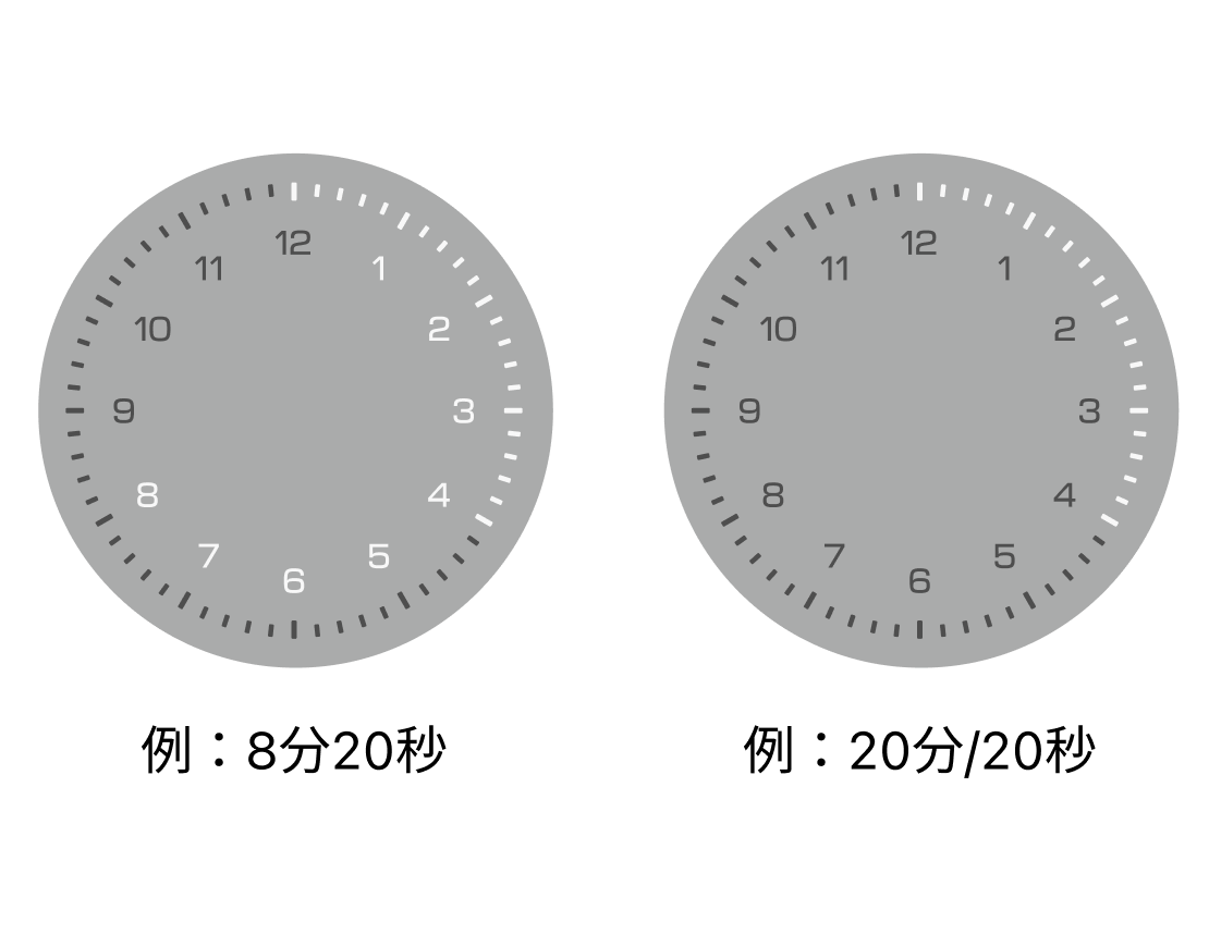 クラウンを回して「秒」を選び、クラウンを押すとサウンドとともにタイマーが開始されます。秒は5秒単位で増減し、分をまたいで設定ができます。
