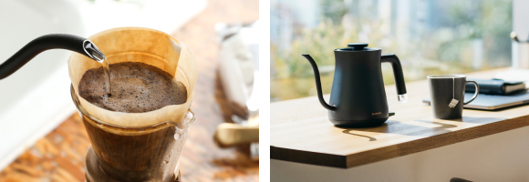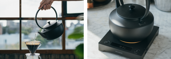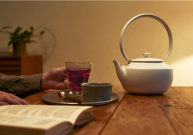 ゆらめく光と音で、安らぎの時間を印象的にする電気ケトル。50℃から100℃まで、1℃単位で温度調整が可能です。日本茶、コーヒー、ハーブティーを最適な温度で淹れることで、素材本来の香りや味わいを存分に引き出します。