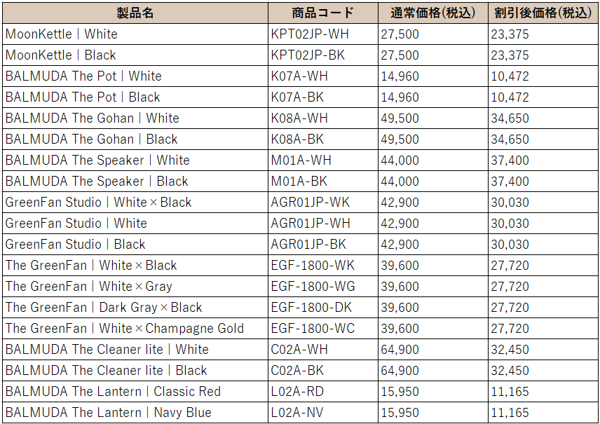 BALMUDA The Store Aoyamaだけの限定セール。人気のキッチン製品や扇風機、