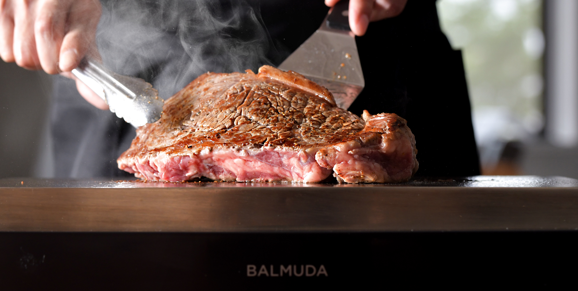 プロの火入れを実現したBALMUDA The Plate Proを使って、参加者のみなさまに国産黒毛和牛のステーキを焼いていただくワークショップです。