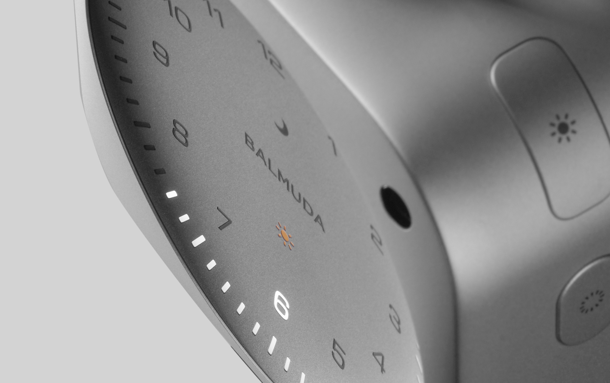 アルミニウムのブロックから、精密に削り出されたバルミューダのクロック。優しく鳴り始めるアラームや、夜のひとときを落ち着きの時間に変える“Relax Time”など、1日を通じて良い時間を過ごしていただくためにデザインされました。専用アプリBALMUDA Connectとの連携でより便利に、自分好みの設定に。さまざまな場所に持ち運べるよう、布製の収納袋が付属されています。